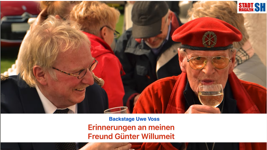 Am 17. Oktober 2013 verstarb Dr. Günter Willumeit im Alter von 71 Jahren nach einem langen Krebsleiden. Im Gedenken an den prominenten  Humoristen und Zahnarzt veröffentliche ich heute an seinem Todestag die Folge »Erinnerungen an meinen Freund Günter Willumeit«  in meiner Stadtmagazin-TV-Serie »Backstage mit Uwe Voss«. In dieser Ausgabe über diesen wunderbaren Künstler, Freund und Kollegen erleben sie als ein Highlight seine berührende Heinz-Rühmann-Parodie aus dem »Hauptmann von Köpenick« auf meinem 60. Geburtstag mit 200 Gästen. Ich werde Günter Willumeit nie vergessen. Vossi / Uwe Voss