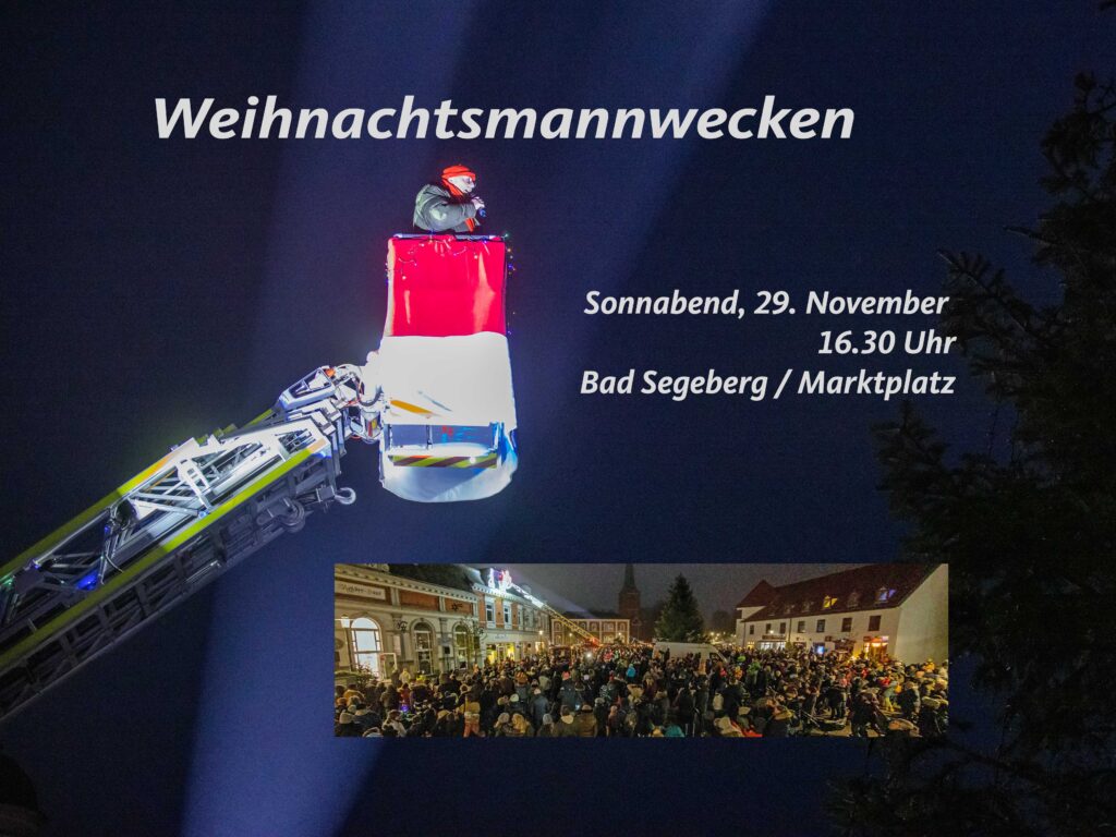 Das Weihnachtsmannwecken 2024 startet am Sonnabend, 30. November um 16.30 Uhr traditionell auf dem Bad Segeberger Marktplatz. Um 17.30 Uhr lädt Vossi zum Punschempfang anlässlich seines 75. Geburtstages in die Buchhandlung »Buch am Markt«. – Vielen Dank an das Team von Tina Stahl.